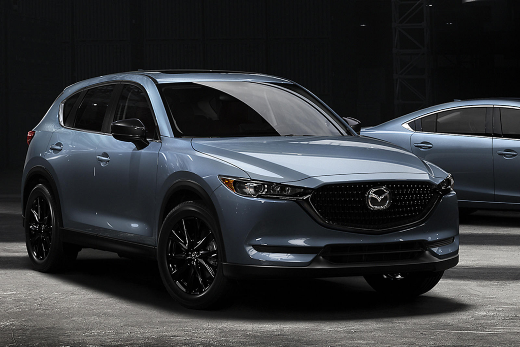 As for the 2021 CX-5, this compact crossover SUV comes equipped with a standard 10.25-inch touchscreen infotainment display as well as an available head-up display, digital instrument cluster, and 360-degree-view monitor along with a host of high-tech advanced safety and driver assist features.